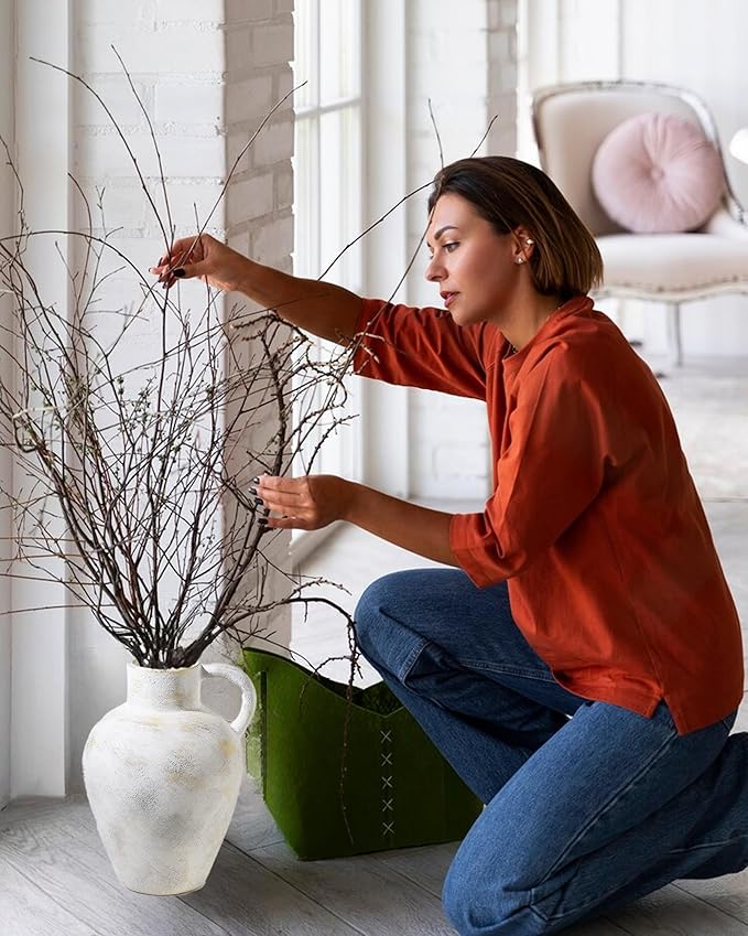 - Perfect for Entryway Tables, Large Dining Tables, or Fireplace Mantels:This large ceramic vase makes a stunning statement on spacious entryway consoles, grand dining tables, or fireplace mantels. It pairs beautifully with off-white, greige, or light olive wall tones, especially in matte finishes. Complete the look with rustic pottery and linen tablecloths.