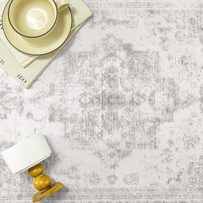 Runner Rug 3x12 Washable Light Gray Hallway Runner Vintage Boho Medallion Non Slip Grey Distressed Retro Carpet Indoor Low Pile Long Soft Rug for Kitchen Entryway Bedroom Bathroom Laundry