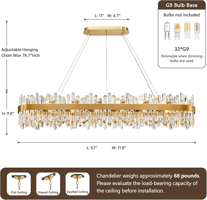 - 【Light Source】: 32* G9 Bulbs Required (NOT included). Voltage: 110V. Maximum 40w per bulb, chandelier is also compatible with dimmable led, energy saving, halogen blubs etc.
