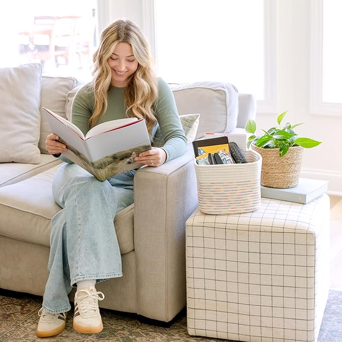 - Safe, Natural Cotton Organizer Bins: Crafted from the highest quality material in the market, our storage bins are oh-so-sturdy (and cute) and ready to take on little humans. They’re 100% safe, so you can rest easy if teething toddlers take a nibble.