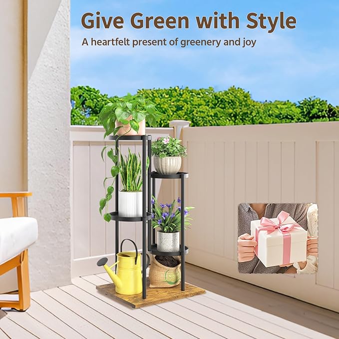 - 【Wooden Base for Safety】Worried your multi level plant rack might tip over? The thick wooden base adds extra weight for stability, even with heavy planters. It also provides space for small plants or tools like watering cans and seeds, ensuring a secure and practical solution for your home.