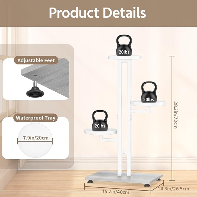 - 【Reinforced Support for Heavy Planters】Thicker metal pipes ensure exceptional durability, securely holding heavy planters up to 8 inches in diameter. Even when watering your plants and as they grow heavier, the tiered plant stand remains stable without wobbling or bending—an ideal long-term option for reliable support.