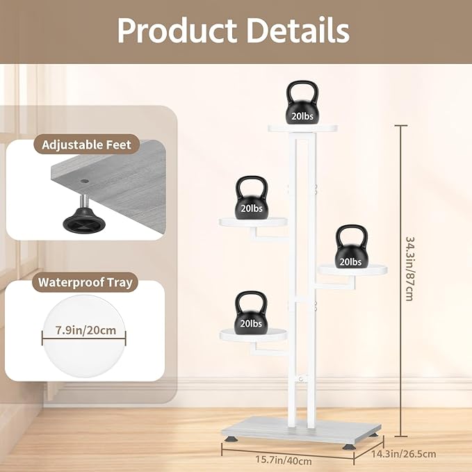 - 【Adjustable Feet for Any Floor】Equipped with 4 foot pads, this plant stand indoor tall ensures stability on uneven surfaces, preventing wobbling. It also protects your floors from scratches, offering peace of mind and preserving the beauty of your home.