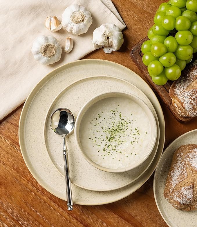 - A THOUGHTFUL GIFT: With its natural tones and calming design, our dinnerware set brings a sense of tranquility and elegance to any table. It makes for a thoughtful gift for family and friends on occasions like Thanksgiving, Christmas, housewarmings, or weddings.