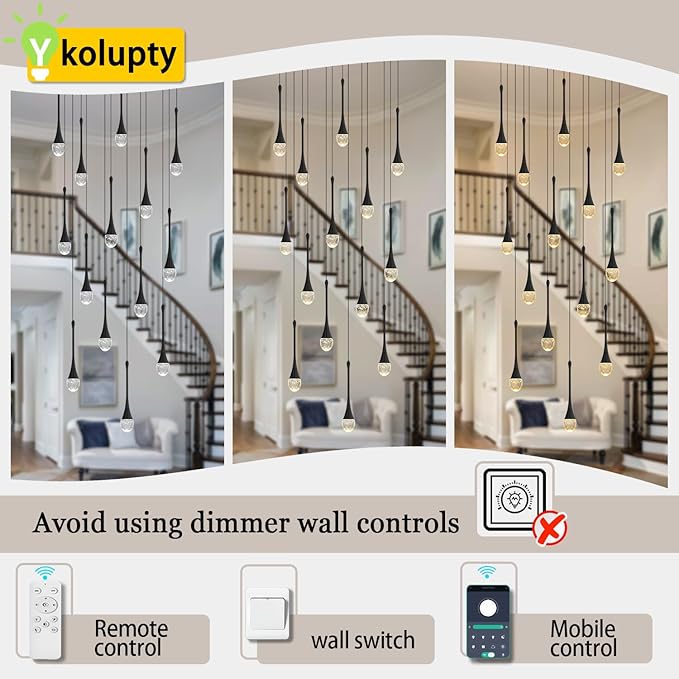 - 【Staircase Chandelier Easy to install】:all wires are pre-wired and pre-threaded. Just need to install the fixture into the ceiling box, then assemble the crystal pendants. Please check the dimensions of the product before ordering to ensure it fits your home.