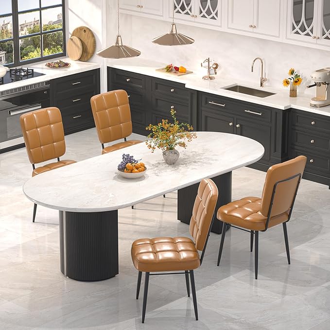 - Premium Leather Dining Chairs: Our leather fabric is durable and resists stains and fading while remaining beautiful and soft to the touch. With its easy-to-clean leather surface, you can wipe away the mess effortlessly. The kitchen dining chairs feature a classic tapered four-leg base with a matte black powder coat finish for a stable structure and a max weight capacity of 310 pounds.