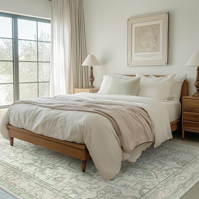 GENIMO 7'6''x9'6'' Area Rugs for Living Room, Machine Washable Non Slip Vintage Rugs, Low Pile Lightweight Chenille Print Rug for Bedroom, Dining Room, Home Office, Oat Light
