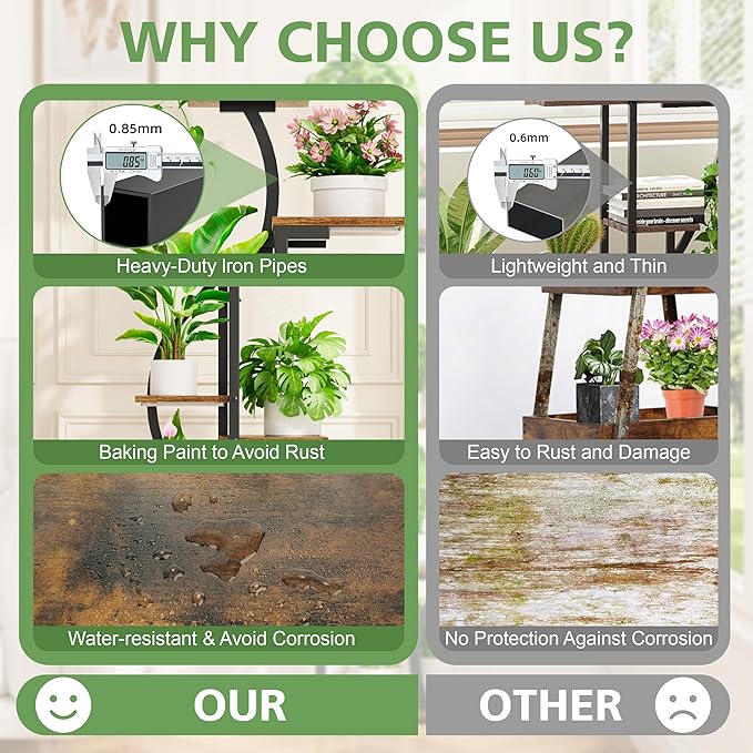 - 【Easy Setup】 Assembling this plant stand is simple with included instructions and tools. A wall anchor is provided for extra stability, ensuring a safe and secure home environment, even with kids or pets. Beautify your space with ease and confidence.