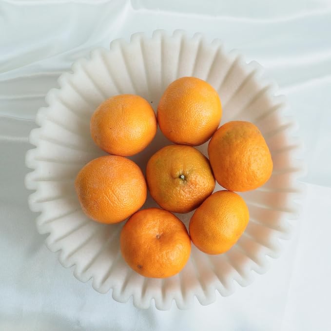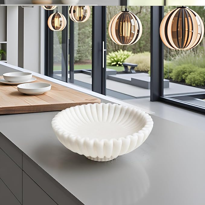 12" Large Decorative Bowl decor , Scalloped Pedestal Bowls for Modern Home Decor,Ruffle Decor,Stylish Key Bowl for Entry Table,Decorative Fruit Bowl for Kitchen Counter,Artificial Stone Milky white