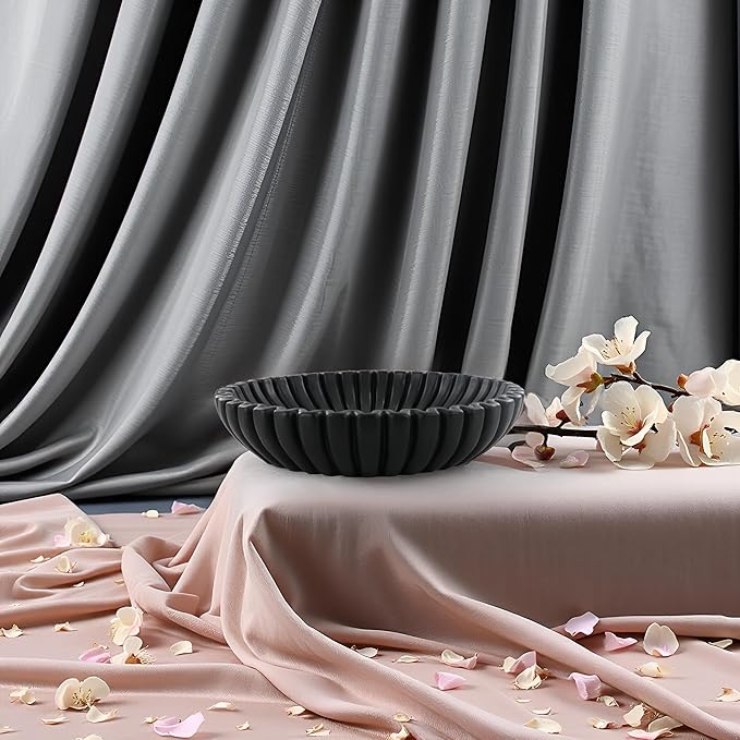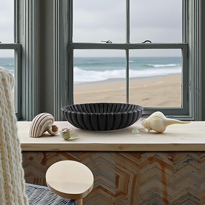 15" Large Decorative Bowl decor , Scalloped Decorative Bowls for Modern Home Decor,Ruffle Decor,Stylish Key Bowl for Entry Table,Decorative Fruit Bowl for Kitchen Counter,Artificial Stone Black