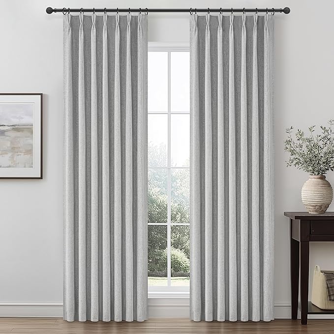 - Pinch Pleats Design:Each panel has 7 pleats.linen draperies are crafted from blended fabric(30%linen,70%polyester),drapes well and not easy-wrinkle.Suitable for various styles:modern,farmhouse,boho,neutral,bedroom,living room,nursery,sliding door,etc.