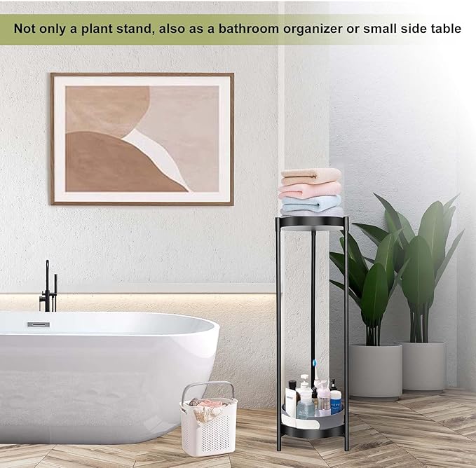 - Sleek & Refined Plant Stand: Expertly constructed from premium black metal, this elegant two-tiered design blends exceptional durability with refined artistry. Its graceful structure enhances any environment, offering the great platform to display your plants, whether indoors or outdoors.