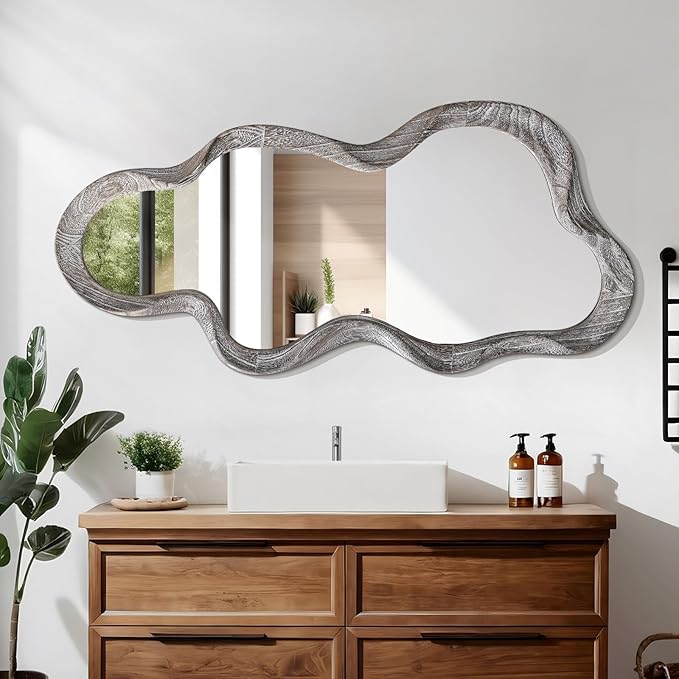 - Stylish and Unique:Our wood framed wall mirror is designed with irregular wave design, cloud mirror Not only a mirror, but also a decorative piece. Elevate your living room, bedroom, bathroom, or home office decor with this adorable cloud-shaped mirror
