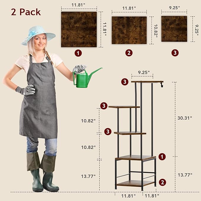 - [Heavy-Duty Design] Built with heavy-duty iron pipes and waterproof walnut shelves, this tiered plant stand indoor is designed to withstand the elements and provide long-lasting support for your favorite plants. The thickened boards are treated with a waterproof layer to prevent warping, curling, or water damage, making it perfect for both indoor and outdoor use. It’s a durable, elegant solution for those looking to enhance their spaces with indoor plant shelf and flower stands for indoor plants