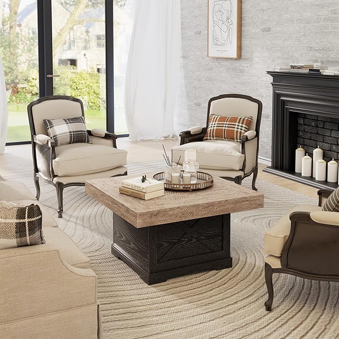 - Space Saving: Made of premium FSC-certified engineered wood. Enough desktop saves a lot of space for compact space, The 31.5-inch square tabletop offers plenty of room for drinks, books, decor, and snacks while keeping a compact footprint. It could be a living room table surrounding a large set of sofa or in a small space.