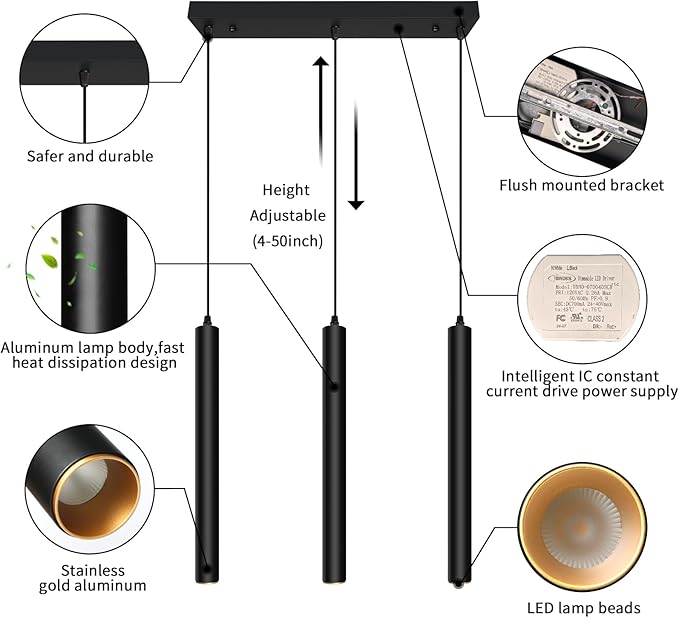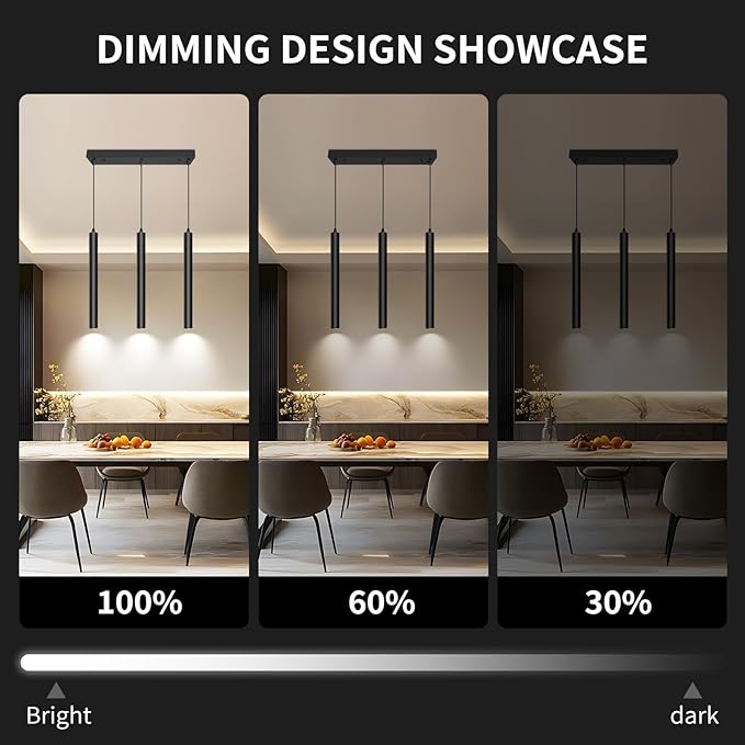 - 【Dimmable pendant light】Kitchen lighting fixtures ceiling with ETL certified dimmable driver can achieve 0%-100% brightness adjustment, but needs to be used with a dimmer or smart switch;voltage:110V; color temperature:4000K natural light.