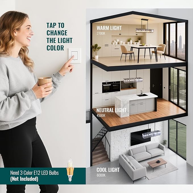 - ✨【Bulb Requirement】: Need 7 x E12 Bulbs (Max 40W, not included). Recommend using 3-color E12 LED bulbs, you can change the light color from warm light(2700K) - cool light(6000K) - neutral light(4500K), creating a warm & relaxing lighting atmosphere for different occasions.