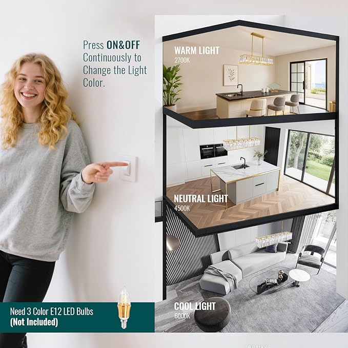 - â¨ăBulb Requirementă: Need 7 x E12 Bulbs (Max 40W, not included). Recommend using 3-color E12 LED bulbs, you will have 3 light colors for different home ambiances. Warm light for cozy night sleeping, bright cool light for reading or working, neutral light for a formal family dinner.