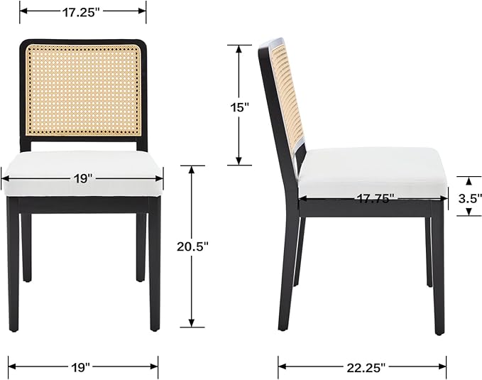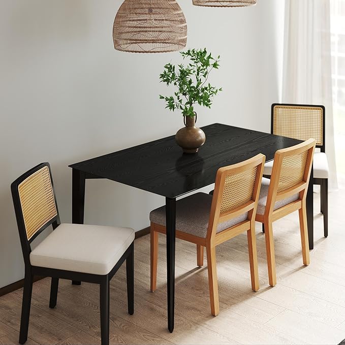 - Simple & Elegant: These modern dining chairs feature a padded cushioned seat, a square rattan back, and wood legs. The chairs are designed to be simple yet elegant, making them versatile enough to fit into various home decor styles. Their minimalist aesthetic ensures they won't overwhelm the space but will add a touch of sophistication to your dining area.