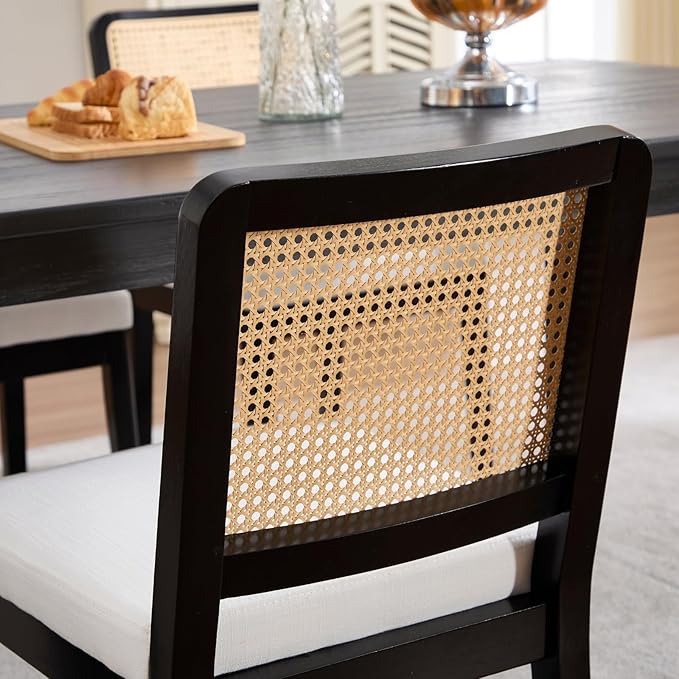 - Simple & Elegant: These modern dining chairs feature a padded cushioned seat, a square rattan back, and wood legs. The chairs are designed to be simple yet elegant, making them versatile enough to fit into various home decor styles. Their minimalist aesthetic ensures they won't overwhelm the space but will add a touch of sophistication to your dining area.