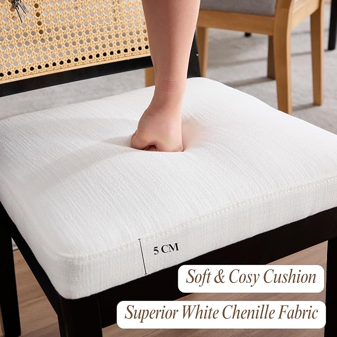 - Soft Cushion Seat: The seat cushion is an impressive five centimetres thick, providing ample padding and support. And the rattan backrest creates a seating experience that is both comfortable and stylish. The soft cushion seat conforms to your body, providing a relaxed and supported feeling throughout your meal.