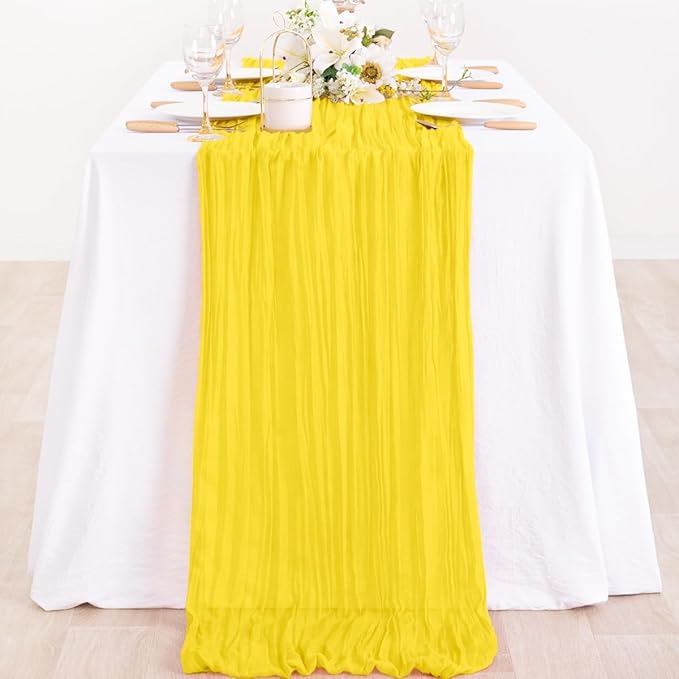 MLMC Yellow Table Runner 10ft Rustic Fall Cheesecloth Table Runner Gauze Cheese Cloth Centerpiece Decororations 35x120 Inches for Wedding Baby Shower Outdoor Picninc Decor