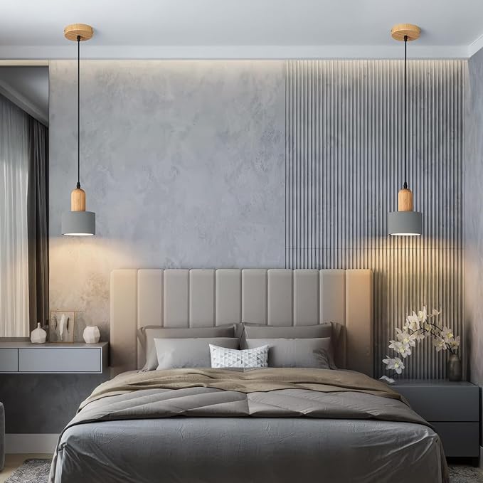 Modern Cement Pendant Lights Grey Chandelier Wooden Ceiling Lamps for Kitchen Island Bedroom Dining Room Living Room bar(2 Pack)