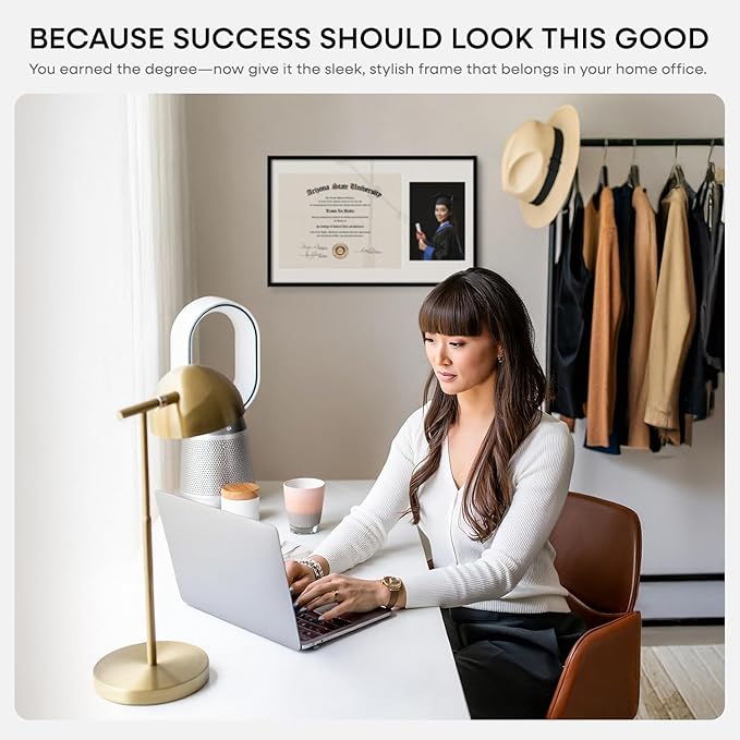 Homeforia 11x18 Black Diploma Frame with Photo, High End Metal 11 x 18 Certificate Frame with Mat for 8.5x11 Diploma and 5x7 Picture, 11by18 Award Graduation Frames, Tempered Glass, Wall Kit, Set of 1
