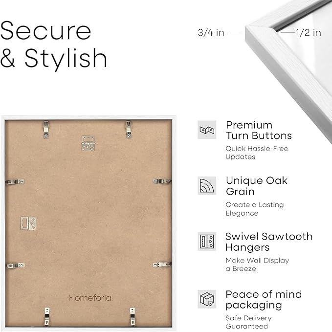 Homeforia 11x18 White Diploma Frame with Photo, High End Oak 11 x 18 Certificate Wood Frame with Mat 8.5x11 Diploma and 5x7 Picture, 18 by 11 Wooden Document Frames, Tempered Glass, Wall Kit, Set of 1