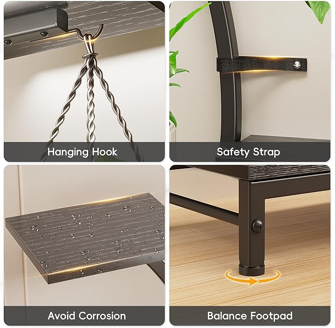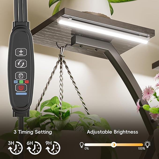 - [ Plant Stand with Grow Lights ] Boost indoor plant growth with full-spectrum, timer-enabled, adjustable grow lights. Three-head design ensures even light for all tiers. Place anywhere indoors—no need to move plants for sunlight