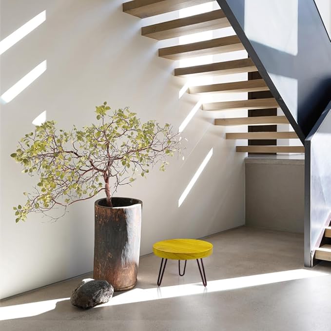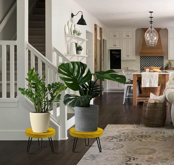 - 【Material】The top plate is made of natural wood material, you can clearly see the beautiful texture of the wood, it will combine your plants with the most primitive decorations and provide you a comfortable and natural feeling. The legs of the flower pot stand are made of METAL are more stonger than traditional wood legs. Our wooden stool display stand are strong and sturdy and can be used for a long time.