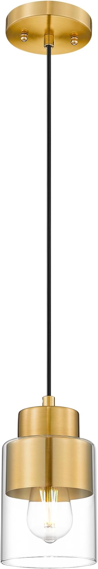 - Trending Design: The pendant light fixture showcases a double-layer design, featuring a cylindrical glass shade that elegantly encases a brushed gold metal inner shade. Its modern and stylish appeal makes it a suitable fit for various interior styles, while the unique yet minimalist aesthetic adds a distinct touch of elegance to your home