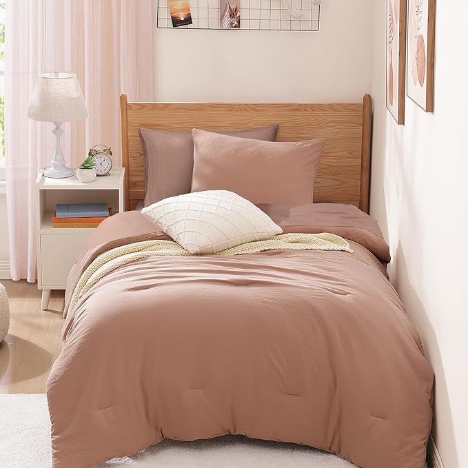 WRENSONGE Twin Comforter Set- 5 Pieces Clay Pink Twin Bed in a Bag, All Season Twin XL Bedding Sets with 1 Fitted Sheet, 1 Flat Sheet, 1 Pillow Sham and 1 Pillowcase