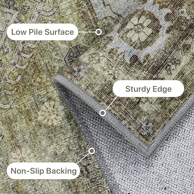 GENIMO Runner Rug 2x7 Non Slip Machine Washable Vintage Hallway Runner Rugs, Low Pile Lightweight Mat for Living Room, Entryway, Bedroom, Kitchen and Corridor, Distressed Sage