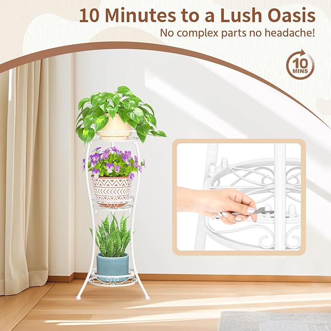 - 【Maximize Space Preserve Style】Tight on room? This vertical, 3 tier metal plant stand makes the most of your space. Whether it’s a small living room corner or a cozy balcony, it allows you to neatly organize plants without sacrificing your personal style.
