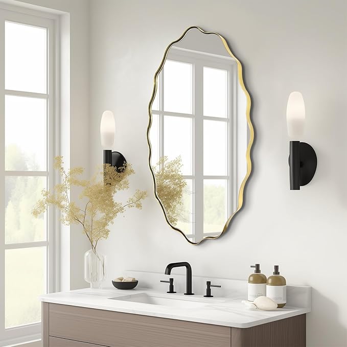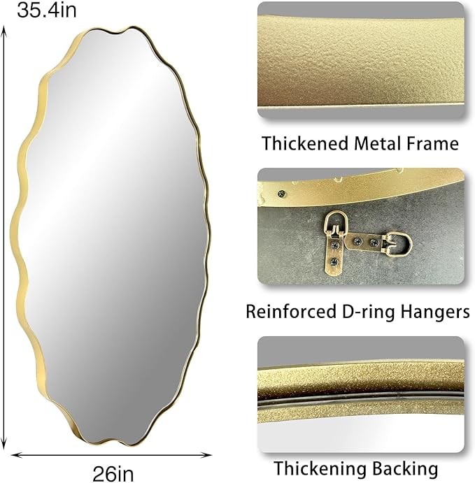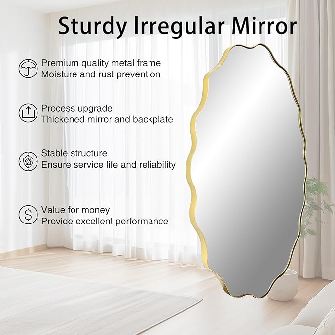Scalloped Mirror, 35.5"x26" Bathroom Vanity Mirror, Irregular Shaped Mirrors Decorative, Modern Wavy Round Mirrors for Living Room Bedroom Hallway Entryway Fireplace