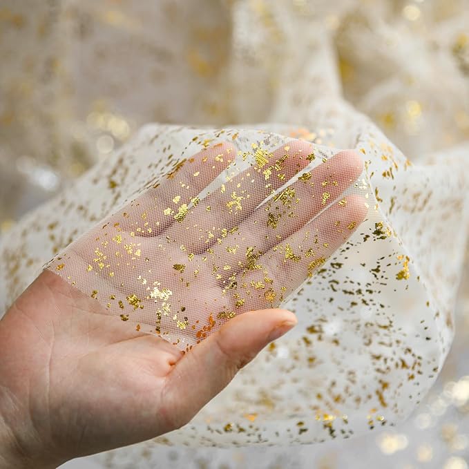 Artoid Mode 6Pcs Beige Gold Gauze Table Runner 120 Inch 10FT, Glitter Metallic Foil Sheer Dining Wedding Anniversary Holiday Birthday Table Decor for Home Party