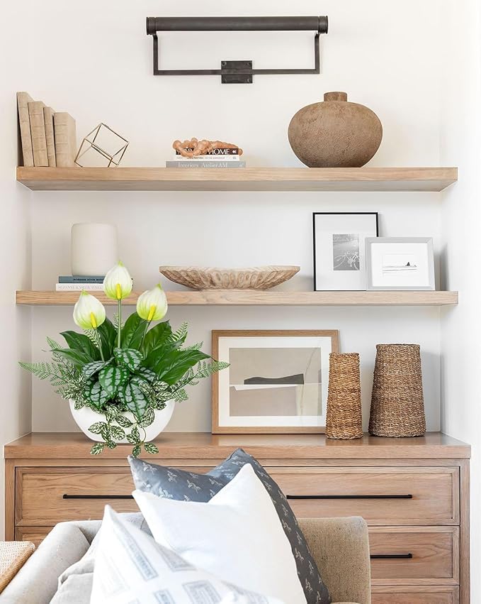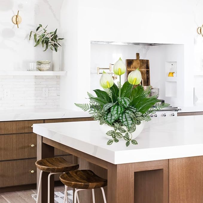 - [Fake Indoor Plants] -Faux potted plant is perfect to display on a bedroom, living room, bathroom, kitchen, table, office, balcony and any other place to infuse your space with a refreshing and natural ambiance. This silk plants also makes a great gift for housewarming parties, weddings, and holidays