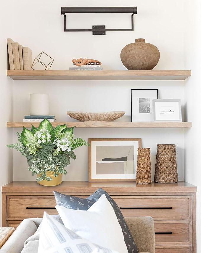 - [Fake Indoor Plants] -Faux potted plant is perfect to display on a bedroom, living room, bathroom, kitchen, table, office, balcony and any other place to infuse your space with a refreshing and natural ambiance. This silk plants also makes a great gift for housewarming parties, weddings, and holidays