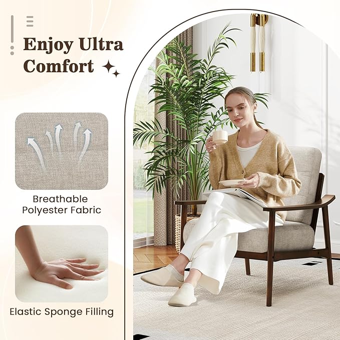 - [Superior Rubber Wood Frame]: With a solid rubber wood frame, the accent chair bears a high load-bearing capacity of 440 lbs. The natural rubber wood frame is also enduring, anti-crack, and wear-resistant for excellent sturdiness and a long-lasting lifespan.