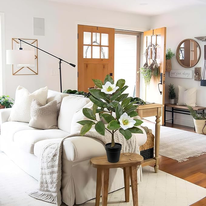 - Enhances Multiple Décor Styles: Whether your home leans toward modern, farmhouse, rustic, or bohemian, this artificial magnolia tree blends seamlessly with your existing design. It’s an excellent way to bring natural beauty into home entryways, living rooms, dining areas, or corporate lobbies, reception areas, or wedding venues.