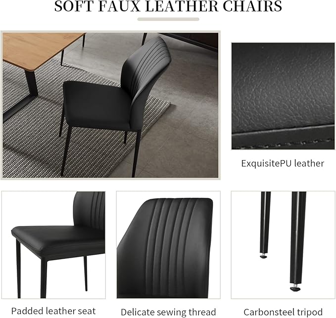 - Comfortable and stylish black chair:The set includes 6 sheets of black upholstered chairs, designed for both comfort and style. The neutral black tone effortlessly blends a variety of decorative styles, while the ergonomic design ensures long-lasting comfort for meals and parties.