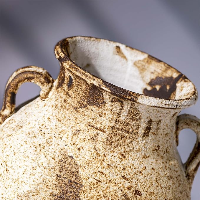 - ⚘ TEXTURE & STYLE:It's important to note that our vases are handmade distressed rustic vases. For increasing the historical feel of the vase, every vase has been aged through complicated technology. The vase body will have a mottled and matte finish, showing the overall sense of erosion and accumulation of years. And the texture of each vase will vary slightly.
