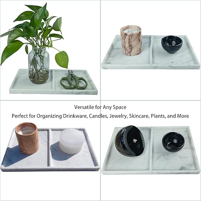 - VERSATILE STORAGE ORGANIZER: This multi-functional marble tray features two compartments, ideal for organizing jewelry, keys, cosmetics, and soap. Perfect for your bathroom, office, or bedroom.