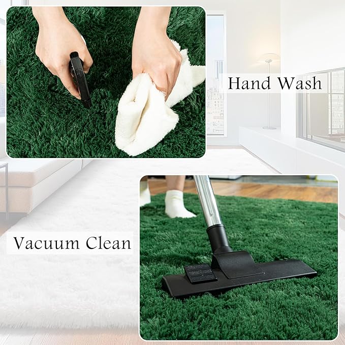 4x6 Area Rug for Bedroom, Green Rugs for Living Room Nursery Kids Room Dorm Home Decor Aesthetic, Fluffy Shaggy Rug with 4 Anti-Slip Carpet Tapes, Dark Green