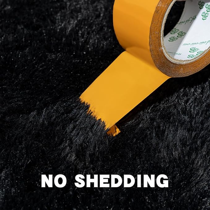 Black Area Rug for Bedroom, 2x3 Small Rugs for Living Room Nursery Kids Room Dorm Home Decor Aesthetic, Fluffy Shaggy Rug with 4 Anti-Slip Carpet Tapes