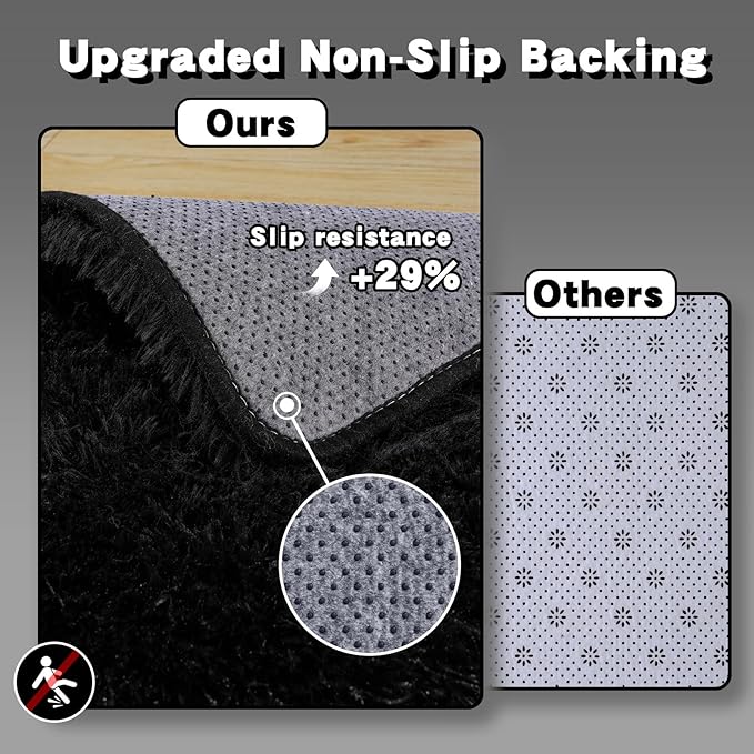 Black Area Rugs for Living Room, 6x9 Fluffy Shaggy Rug Soft Carpets, Rugs for Bedroom Nursery Kids Room Dorm Home Decor Aesthetic