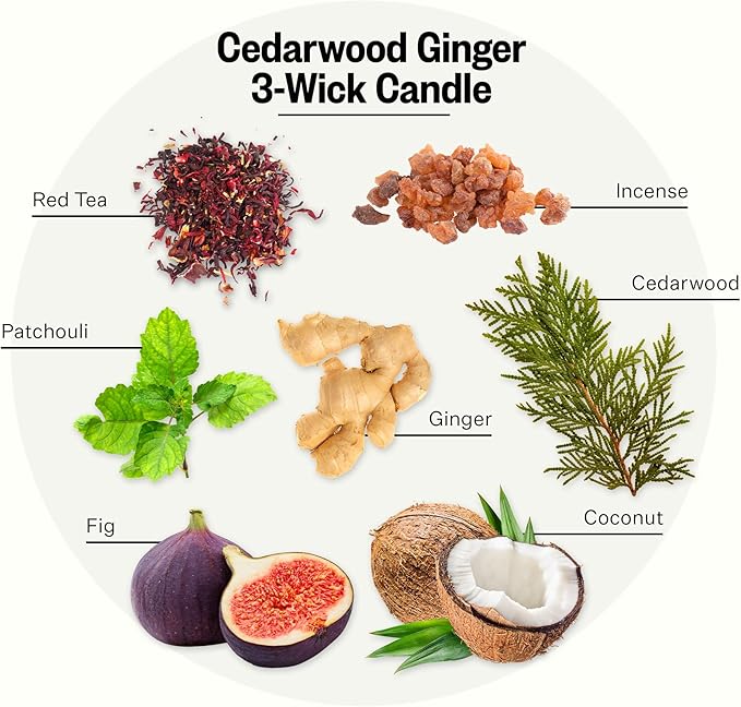 - The Fragrance: Cedarwood Ginger infuses red tea and ginger to highlight juicy figs and sweet coconut while cedarwood, patchouli, and a hint of incense create an enticing and enchanting fragrance.