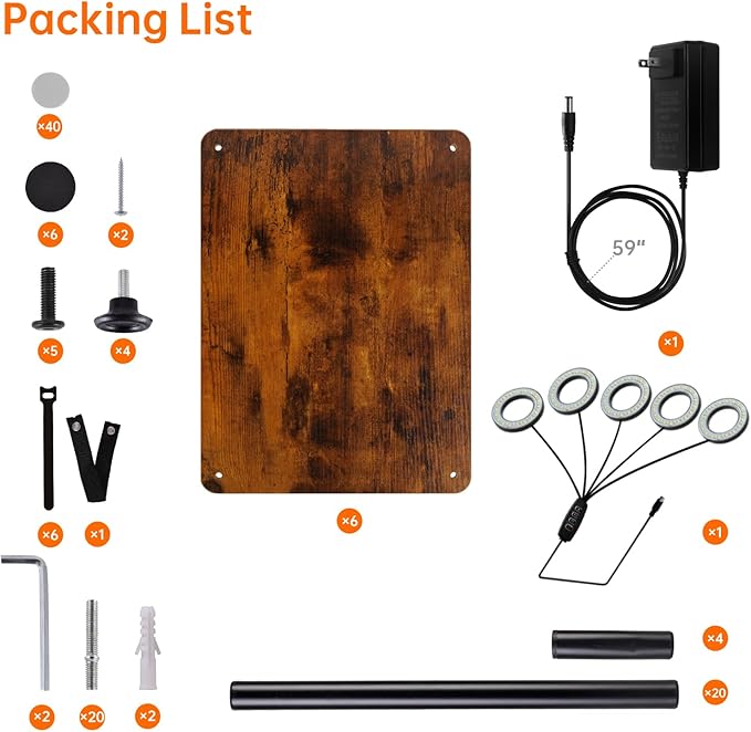 - Easy Assembly - Assembly is straightforward with provided tools and clear instructions. Each component, including wooden boards, screws, and metal rods, is clearly labeled for hassle-free setup. Includes 4 foot pads for added stability and cable ties for a tidy appearance