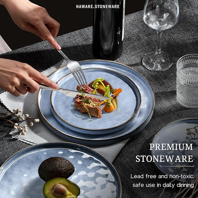HaWare Dinnerware Sets, 24-Piece Plates and Bowls Set, Stoneware Dish Set for 8, Ceramic Dinnerware for Home Restaurant, Chip and Scratch Resistant, Microwave and Dishwasher Safe, Reactive Blue